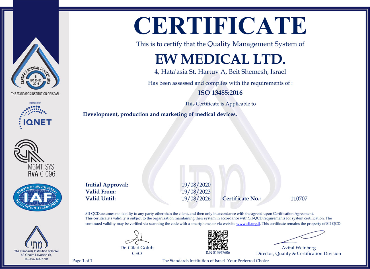 מערכת הניהול שלנו, הבטחת האיכות וכלל תהליכי הפיתוח והייצור, עומדים בתקני איכות בינלאומיים, עם מערכות בקרה ולמידה רציפות. מעת לעת מתבצעות ביקורות של גופים מוסמכים במעבדותינו ואנו שמחים לעמוד בהם פעם אחר פעם.